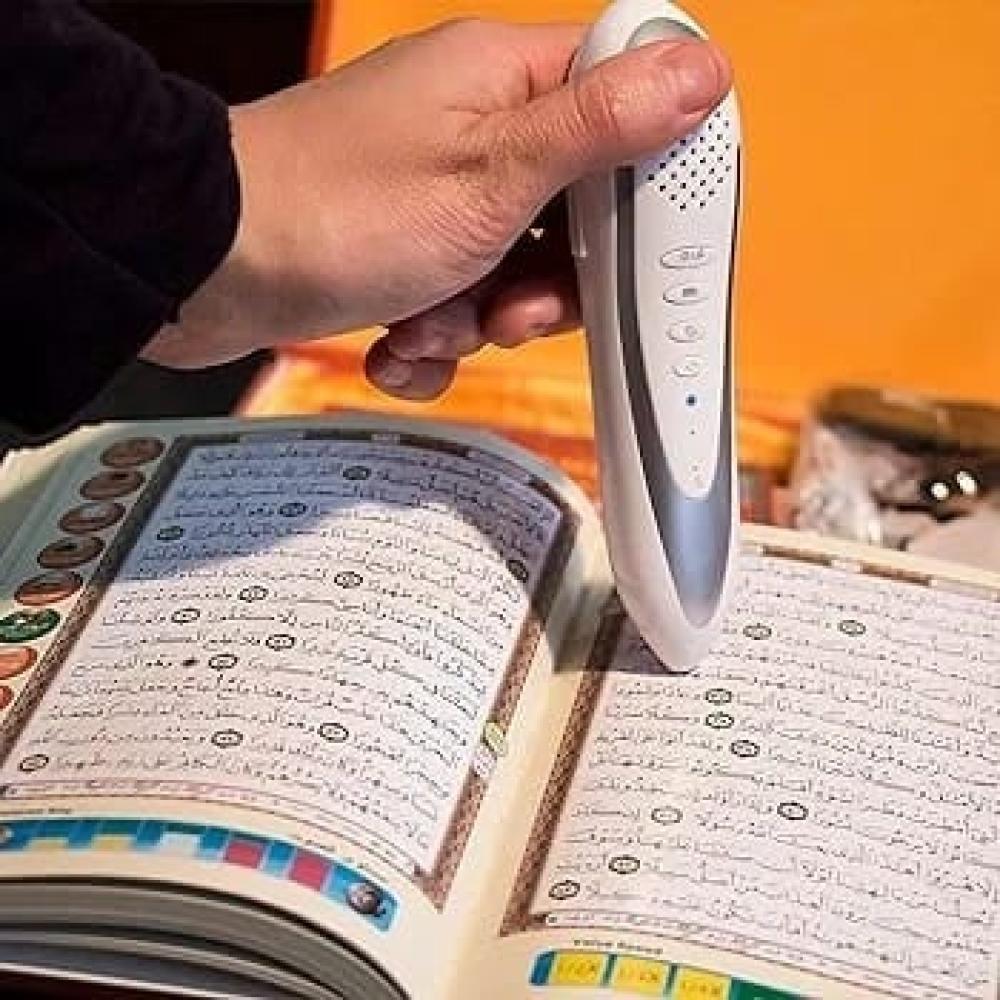 محتويات العلبةقلم قارئ - مصحف - كتب - شاحن - سماعة اذن سلكية