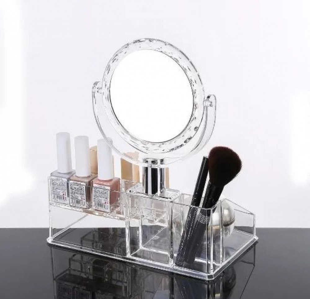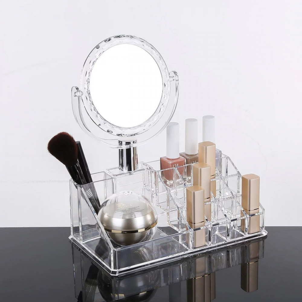 منظم مكياج ومستلزمات تجميل مع مرآة