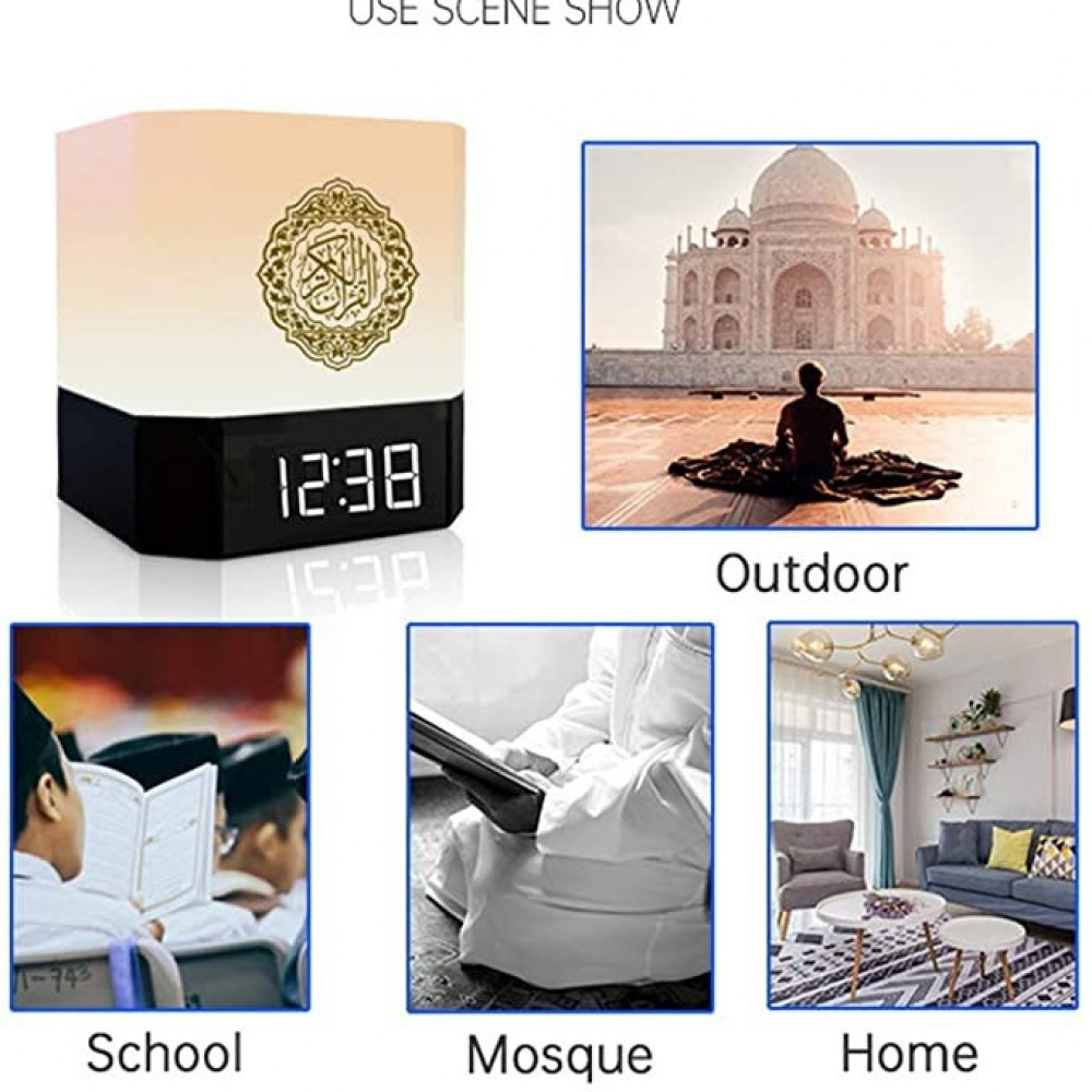 Features of a loudspeaker for the Noble Qur’an with a light bulb and a digital clock